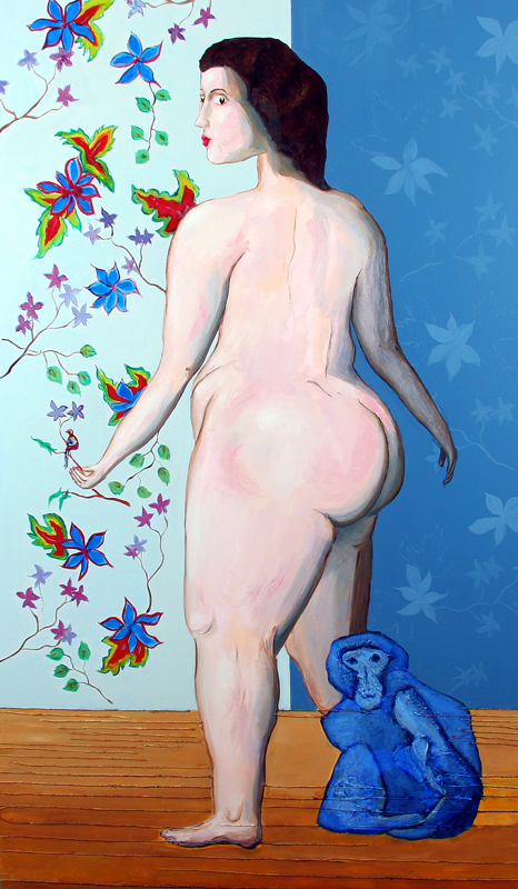 Magalie et son petit oiseau Huile sur toile 180X120cm
