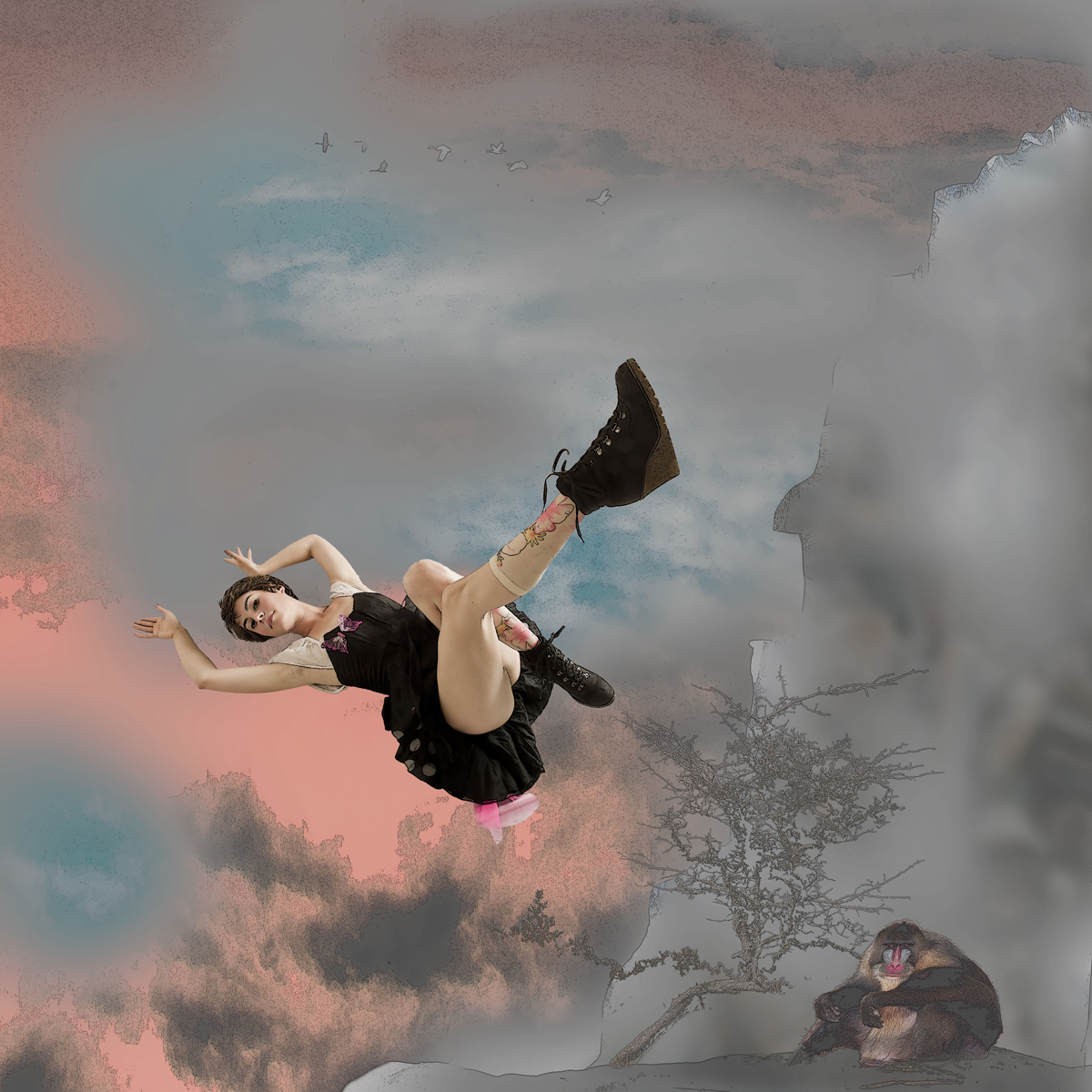 Flying angels in paradise Huile et collage sur toile 83X83cm